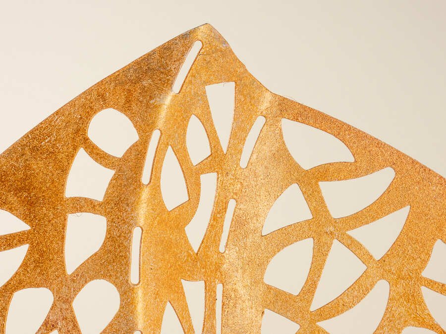 La influencia de la abundancia y prosperidad, del color Dorado Viejo, en la decoración es un tema fascinante que ha sido objeto de estudio y aplicación en el diseño de interiores y exteriores durante siglos, aporta un plus de elegancia al implementarse en una decoración Minimalista de interiores, La propuesta de Obboart es una Lámpara Calada en Metal Dorado, Hecha a Mano decora tus espacios con una obra que inspira prosperidad y es Artesanía Española.